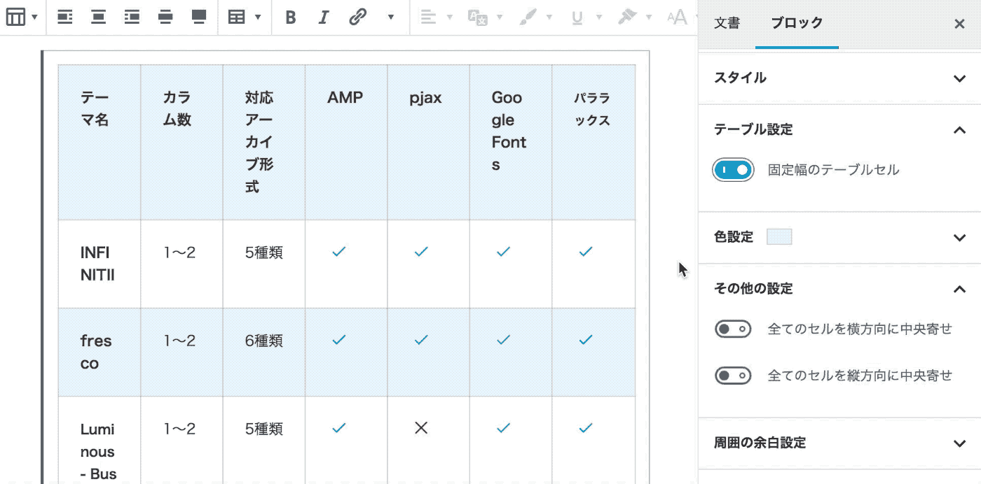 実用的で強力なエディター機能(標準ブロックの拡張)